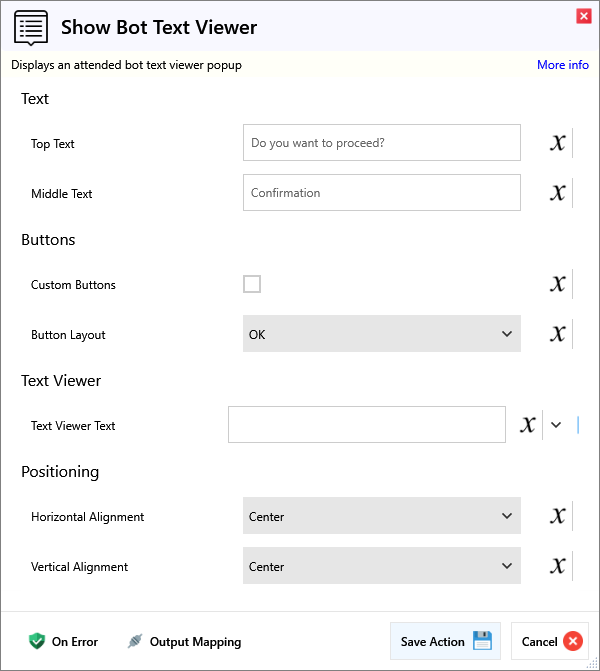 Displays an attended bot text viewer popup