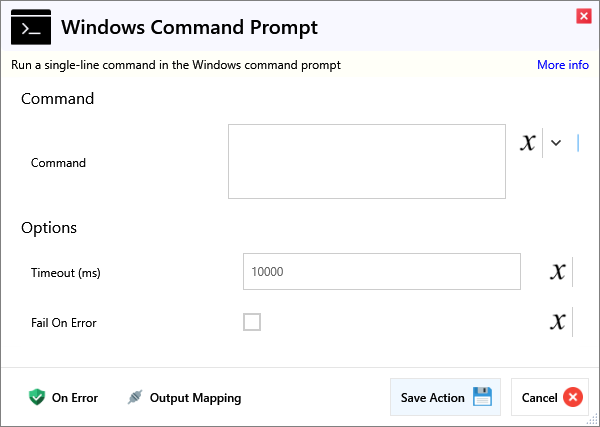 | Fail On Error | If enabled, causes action to fail if a standard error is found. Not recommended except in certain circumstances, as the standard error is also used for certain warnings and information |