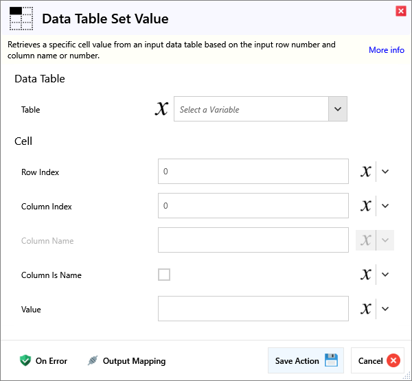Data Table Set Value