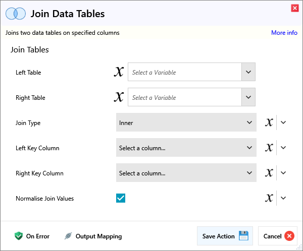 | Left Table | Select the left table for the join operation. | |