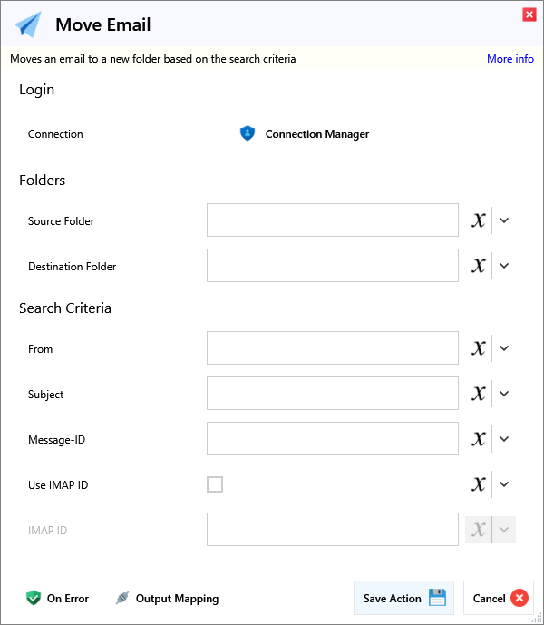| Use IMAP ID | If checked, the IMAP ID associated with the email will be used rather than the Message-ID . | |