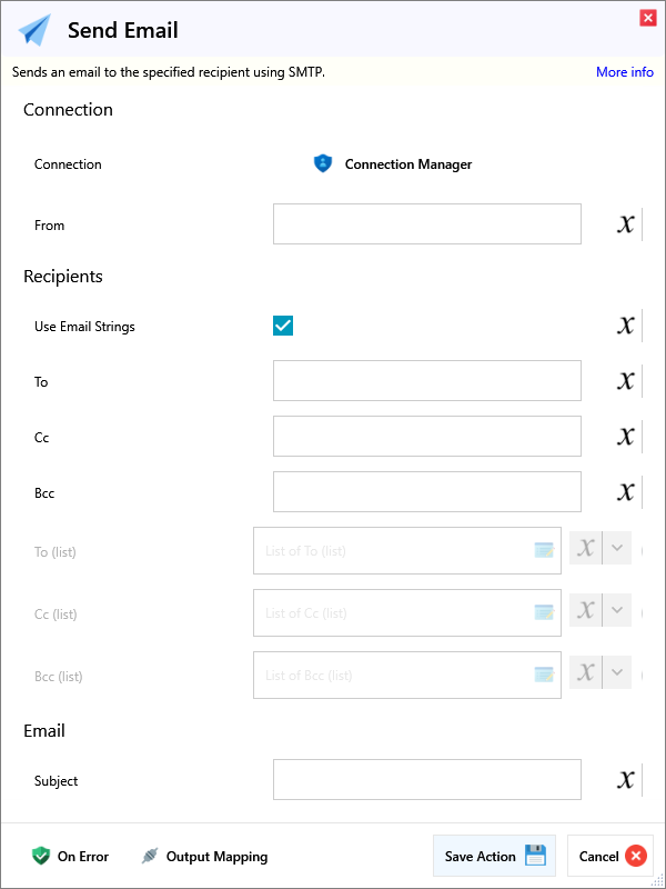 | Use Email Strings | Use semicolon separated string of recipient email addresses. | |
