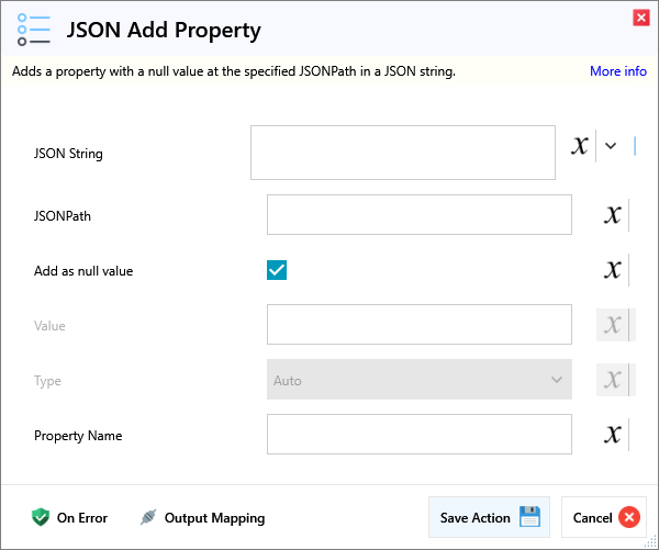 | Add as null value | Add the property with a null value. | |