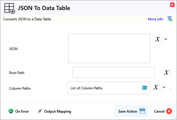 | Column Paths | The path to the columns you want to include in the Data Table. Leave empty to automatically generate Column Paths (Please note that this may not always be accurate) |