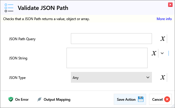 | JSON Path Query | JSON Path expression to query the JSON string. | |