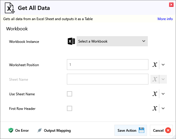 | Use Sheet Name | When enabled, the sheet name will be used to find the worksheet rather than the position. | |