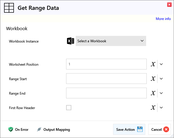| First Row Header | If true, will treat the first row of data as column headers. |