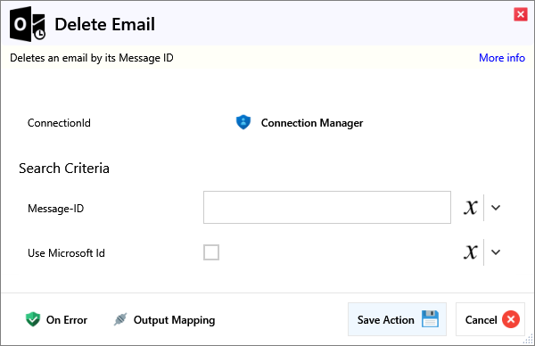 | Use Microsoft Id | If checked, the Microsoft Id associated with the email will be used rather than the Message ID . |
