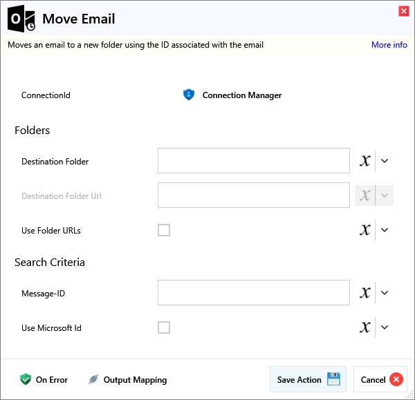 | Use Microsoft Id | If checked, the Microsoft Id associated with the email will be used rather than the Message-ID . |