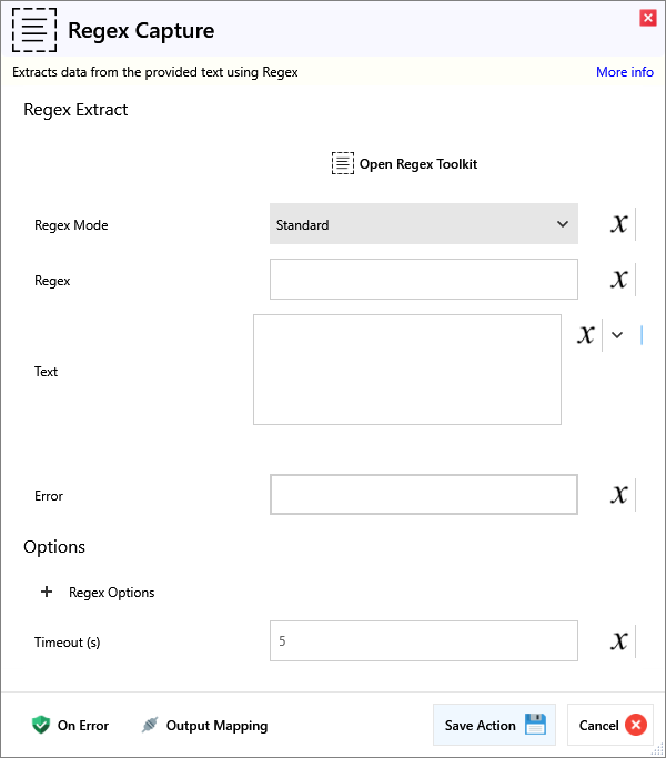 | Regex | Regex pattern to use for extraction. | |