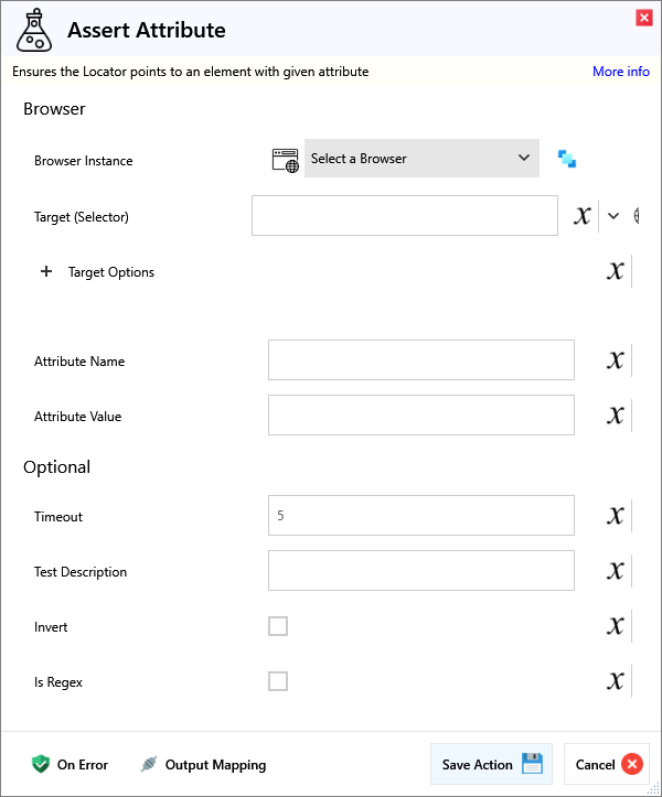 Frame Target (Selector)(Optional) Specify a Frame Selector, for example to first target an iframe before the primary Target.