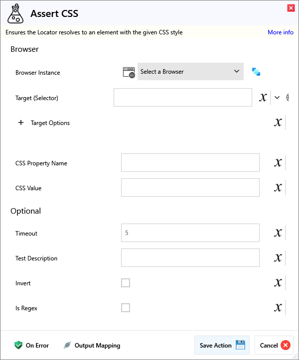 | CSS Property Name | Name of the CSS property to assert | |