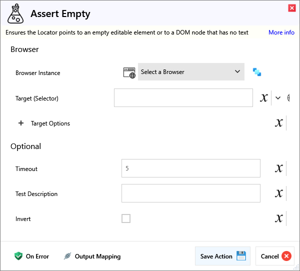 Frame Target (Selector)(Optional) Specify a Frame Selector, for example to first target an iframe before the primary Target.