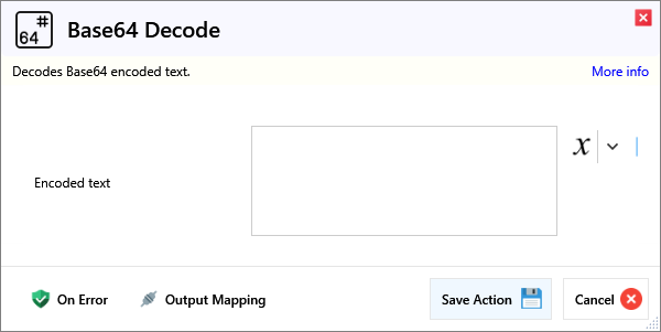 Decodes Base64 encoded text.