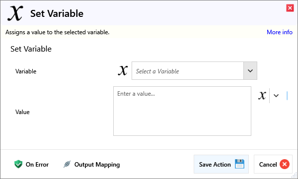 | Value | The value to set the Variable to. |