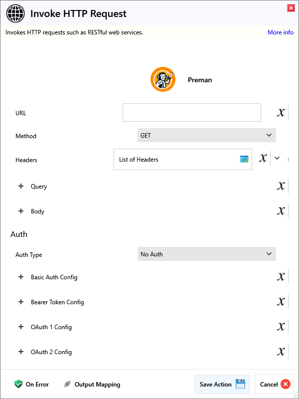 | Download Folder | Use when "Download File (To Folder)" option is selected. The file is downloaded to the provided folder. The file name will be acquired from the response headers if available. | |