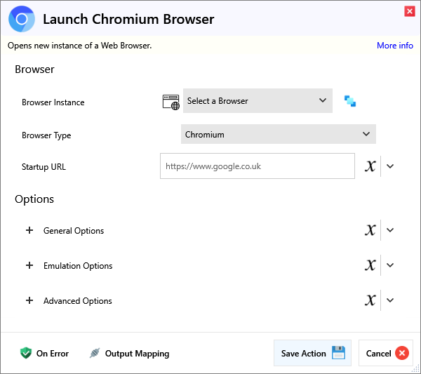 | Startup URL | (Optional) The URL to load when the browser opens, must include https:// or http://. |