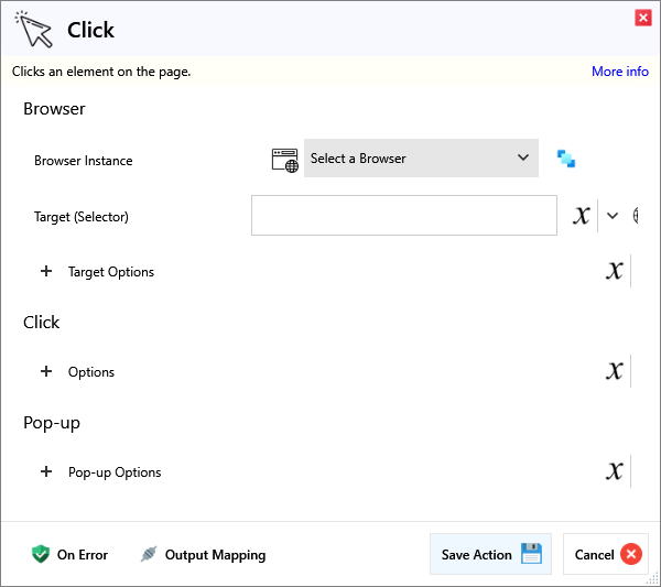 Target (Selector)A Selector string that targets a specific element on the web page.