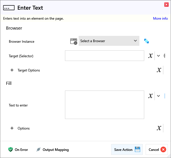 | Text to enter | The text that will be used to fill the selected element. |