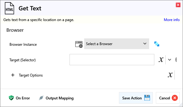 | Target (Selector) | A Selector string that targets a specific element on the web page. |