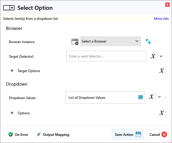 | Target (Selector) | A Selector string that targets a specific element on the web page. |