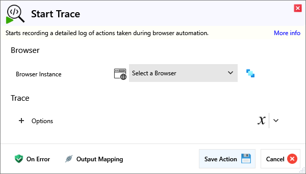 Starts recording a detailed log of actions taken during browser automation.