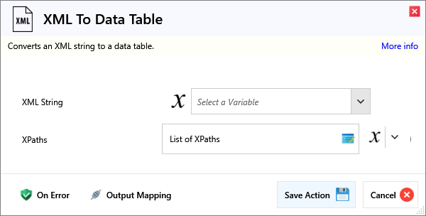 | XPaths | The XPaths to the data that you want to convert to a data table. |